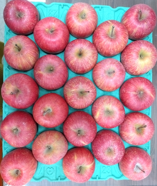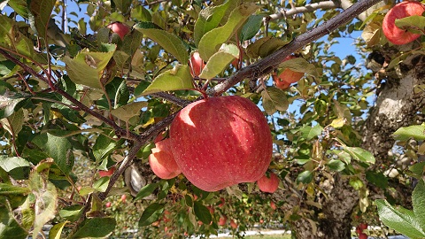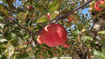 ※「本ふじ」は古くからの品種で、色づきが悪いのですが、上品で味の良いりんごです。